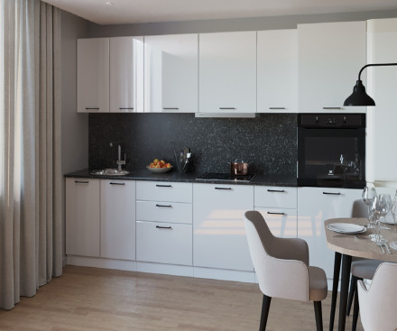 Белая глянцевая кухня неизменно пребывает на пике популярности. Она является настоящим олицетворением легкости, свежести и гармонии. В таком помещении даже воздух покажется более чистым, а солнечный свет наполнит ярким сиянием каждый ее уголок.