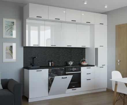 Белая глянцевая кухня неизменно пребывает на пике популярности. Она является настоящим олицетворением легкости, свежести и гармонии. В таком помещении даже воздух покажется более чистым, а солнечный свет наполнит ярким сиянием каждый ее уголок.