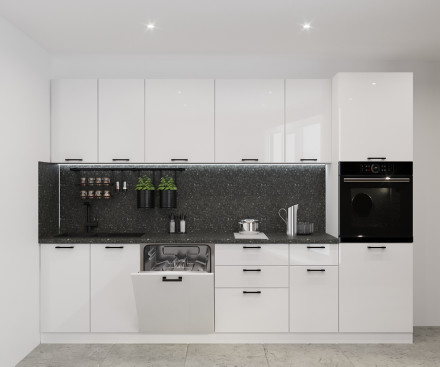 Белая глянцевая кухня неизменно пребывает на пике популярности. Она является настоящим олицетворением легкости, свежести и гармонии. В таком помещении даже воздух покажется более чистым, а солнечный свет наполнит ярким сиянием каждый ее уголок.