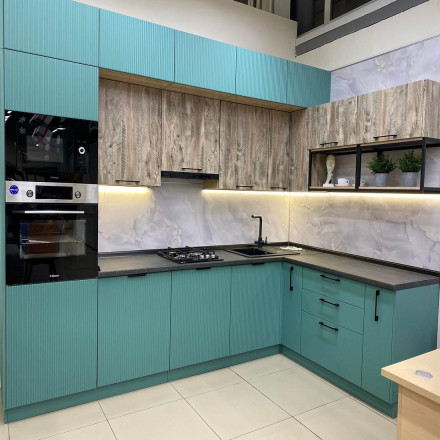 Кухня Торос Графит Керамик Черная алюминиевая витрина
